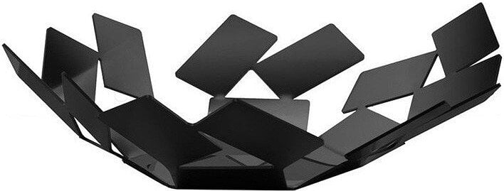 La serie de productos La Stanza dello Scirocco es el fruto del trabajo del diseñador siciliano Mario Trimarchi. Al concebir los platos, cestas y cuencos de esta colección, se inspiró en la atmósfera mágica de las habitaciones de las antiguas casas sicilianas, donde se esperaba a que amainara el cálido y seco viento del sur, el Scirocco, que traía consigo nubes de polvo de arena del Sahara. Estas habitaciones suelen carecer de ventanas y a menudo tienen una única fuente de luz. Por ello, los diseños de Mario Trimarchi se basan en un juego de luces y sombras, y la forma del recipiente aquí presentado evoca la inestabilidad y la fuerza de la erosión que resulta de los elementos. Los objetos incluidos en la colección han sido fabricados con piezas rectangulares de acero de diferentes tamaños, que dan forma a las siluetas deseadas. Las formas austeras y geométricas del cuenco aquí presentado captan la mirada y esparcen a su alrededor un aura abstracta y misteriosa. Ideal para servir fruta, este cuenco puede convertirse también en una decoración única para un salón o comedor de estilo minimalista, especialmente porque está disponible en versiones de color blanco y negro, y en acero pulido.