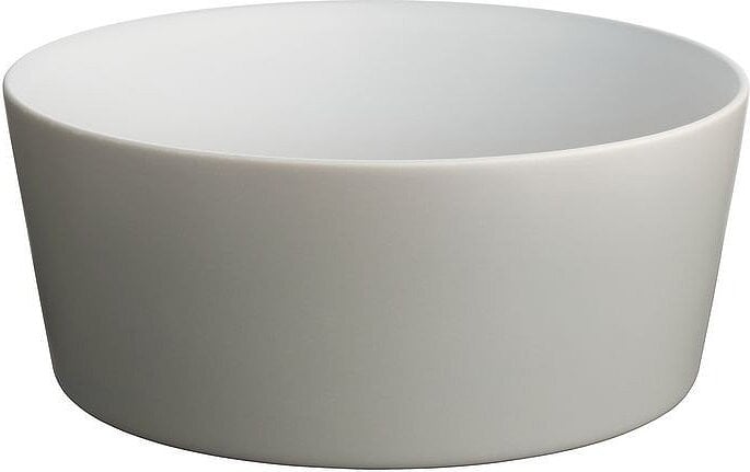 Un bol de la colección Tonale, diseñado por el aclamado David Chipperfield. Tonale es una colección de vajilla que encarna la esencia de la simplicidad y la funcionalidad. Mientras que las superficies exteriores se visten con tonos pastel o neutros, su interior se mantiene de un blanco inmaculado, sirviendo como el lienzo perfecto para realzar la belleza de tus creaciones culinarias. Las formas robustas y sencillas de esta vajilla, junto con la ausencia de asas, evocan la pureza de la cerámica original. La paleta de colores neutros y su diseño minimalista hacen de la colección Tonale una elección acertada para interiores de corte minimalista, aunque su versatilidad le permite integrarse con naturalidad en ambientes menos ascéticos.