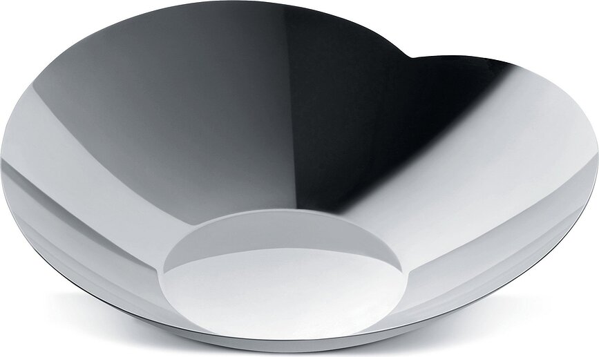 El bol para ensalada aquí mostrado, fabricado en acero pulido 18/10 con acabado espejo, está disponible en dos tamaños y funcionará a la perfección como recipiente para ensaladas verdes, pan, fruta, etc.