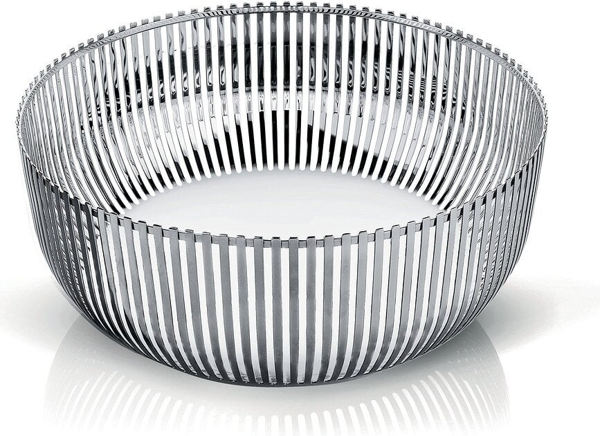 La cesta de fruta PCH05 es una creación de Pierre Charpin, el aclamado diseñador francés. La silueta de este elegante recipiente, forjado en acero inoxidable pulido, evoca las cestas de antaño, de esas que se usaban antes de la era industrial. El intrincado entramado de sus paredes le confiere una ligereza que lo convierte en el marco perfecto para realzar la belleza de la fruta o de cualquier otro tesoro que decida guardar en su interior. La cesta PCH05 encaja a la perfección tanto en ambientes de estilo clásico como en espacios modernos y minimalistas.