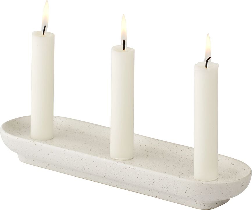 El portavelas triple para la vela clásica Forma, de 28,5 cm de largo, de la marca Bolia, iluminará bellamente cualquier habitación, añadiendo un toque íntimo al interior.