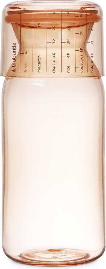 El contenedor de almacenamiento de plástico Barbantia con vaso medidor es un toque de color para tu cocina que hará que medir los ingredientes sea un auténtico placer. Gracias a la tapa-vaso medidor de este recipiente alargado, podrás medir con precisión la cantidad exacta de arroz, avena o pasta por persona. Al funcionar también como vaso medidor, no solo ahorras espacio en la encimera de la cocina, ¡sino que siempre tendrás a mano un medidor cuando lo necesites! El contenedor está disponible en cuatro colores. Este producto tiene un beneficio adicional: al comprarlo, te conviertes en donante de la organización benéfica The Hunger Project.