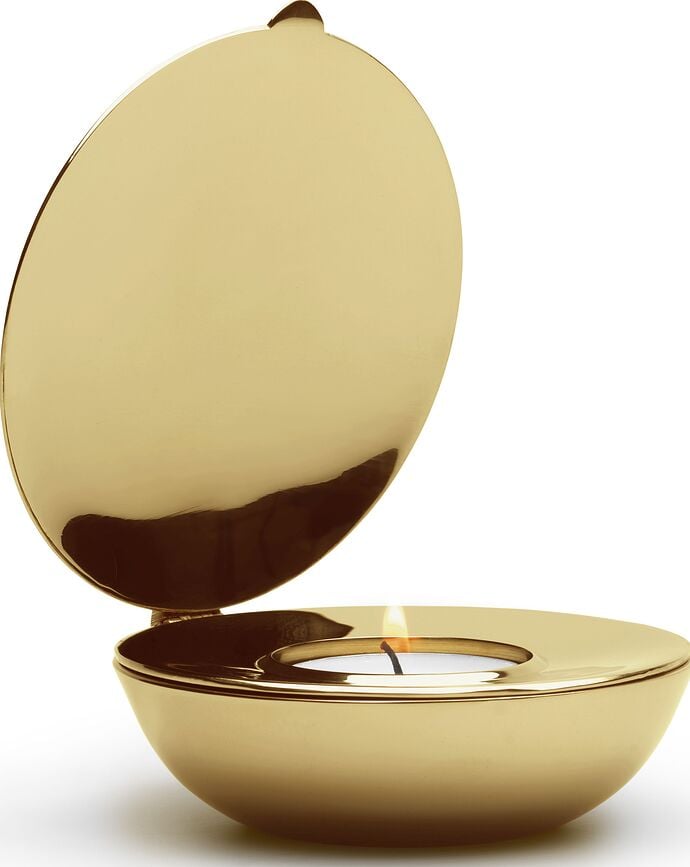 - La tapa pulida y abatible refleja y difunde magníficamente la llama de la vela, creando un resplandor cálido y atmosférico.