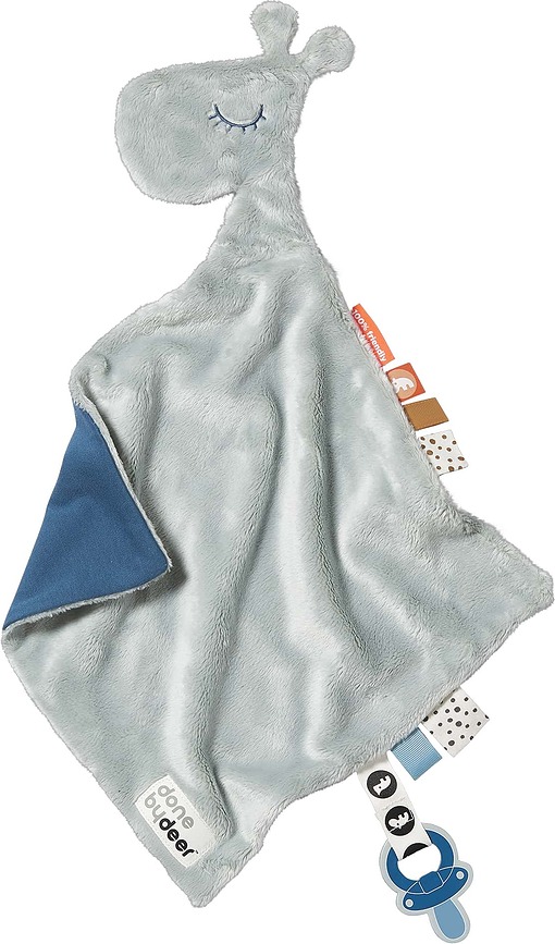 ¡Qué monada, es un verdadero encanto! La mantita de apego Raffi de Done by Deer envolverá a tu pequeño y le ayudará a conciliar el sueño plácidamente en compañía de la simpática jirafa.
