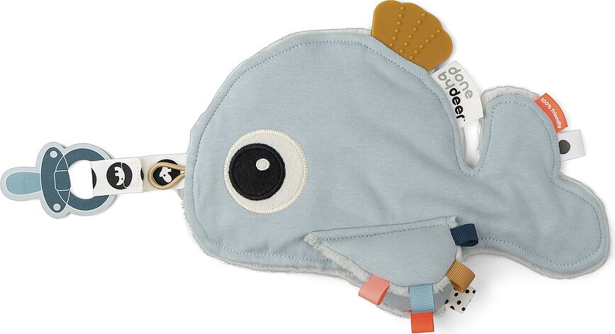 ¡Para agarrar, masticar y abrazar! El colgante Sea Wally de Done by deer puede convertirse en la primera mascota de tu pequeño, para que el chupete no se pierda jamás.