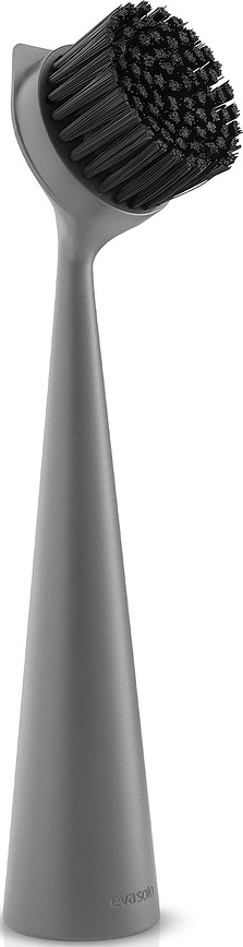 El cepillo para lavar platos de Eva Solo se mantiene en posición vertical de forma estable gracias a su base de peso adicional. Curiosamente, este pequeño ayudante de cocina tiene mucho que ofrecer: