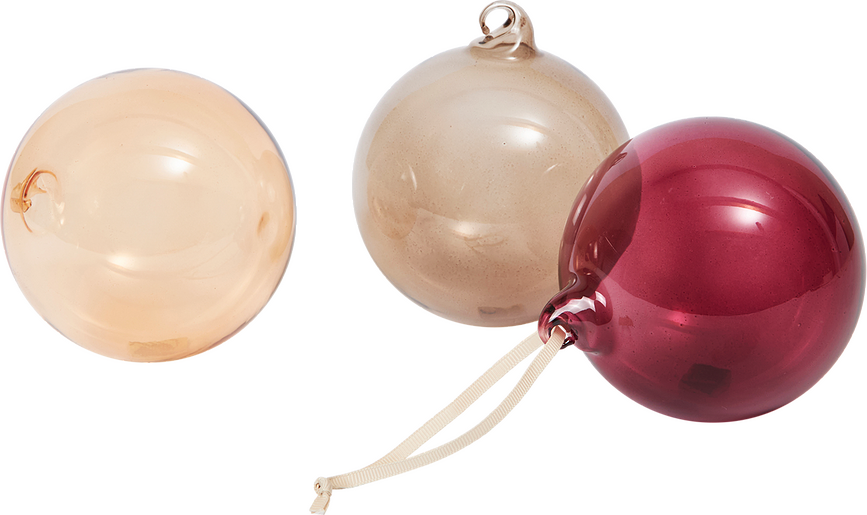 Versiones disponibles:- Bolas de Navidad Ferm Living, translúcidas, Talla L, doradas, amarillas y rojas, Set de 3 unidades