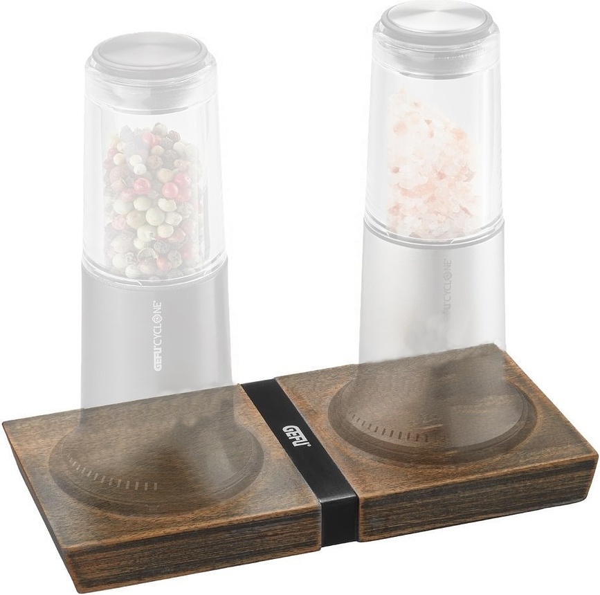 Este es un soporte para molinillos de madera de acacia de diseño, de la colección X-Plosion de Gefu. Es estable, cuenta con dos huecos y luce de maravilla sobre la encimera de la cocina.