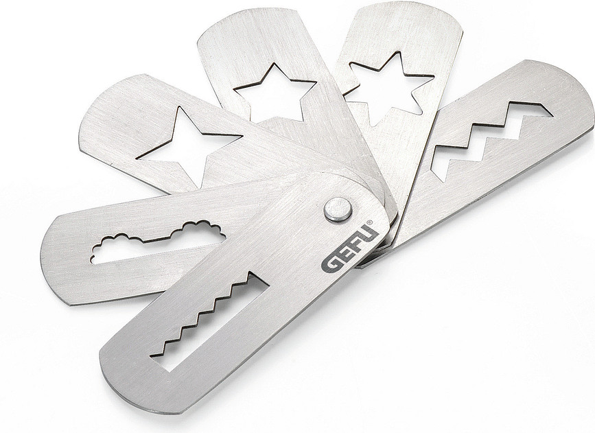 Fabricados en acero inoxidable, los cortadores de galletas para la máquina de galletas Trica de Gefu te permitirán crear las formas de galleta perfectas en un abrir y cerrar de ojos. El set incluye 6 diseños diferentes.