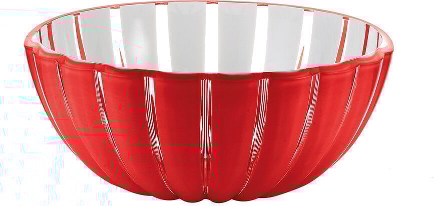 La colección Grace es, como su nombre indica, ¡una colección con encanto! Sus diseñadores, Pio y Tito Toso, que trabajan para la marca italiana Guzzini, con más de un siglo de tradición, se inspiraron en la belleza del vidrio y en las formas creadas por los famosos artesanos de Murano para diseñar los platos de esta serie y... ¡lo consiguieron! Porque lograron transmitir la ligereza y nobleza, así como la naturaleza preciosa y delicada del vidrio, a través del material. Los cuencos de la colección Grace, disponibles en tres tamaños, se caracterizan no solo por su forma femenina, que recuerda a las creaciones plisadas de los mejores diseñadores italianos, sino también por sus inusuales combinaciones de colores. El diseño de los cuencos de la colección Grace se basa en incrustar una cesta calada del color elegido en un cuenco transparente. El lado interior liso del cuenco (blanco, independientemente del color elegido) y la agradable textura exterior ondulada le darán a los cuencos Grace un carácter elegante y refinado a cualquier mesa, mostrando bellamente ensaladas, verduras cocidas, frutas, etc. El material utilizado en la fabricación de los cuencos Grace es seguro para alimentos y está aprobado para su uso con ellos.