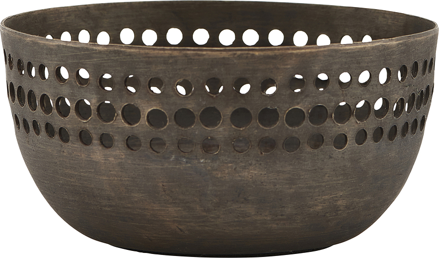 Perfo de House Doctor es un cuenco para aperitivos, fruta o elementos decorativos. Está fabricado en acero y adornado con varias hileras de orificios decorativos. Queda de maravilla sobre una mesa de centro.