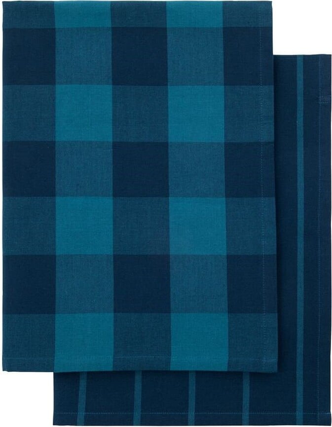 Los paños de cocina Cook de 55 x 75 cm de House Doctor cautivan por su diseño y su excelente confección. Uno presenta un elegante patrón a cuadros, mientras que el otro luce un encantador diseño a rayas. Ambos están confeccionados con algodón certificado de alta absorción, lo que los convierte en aliados imprescindibles en cualquier cocina.