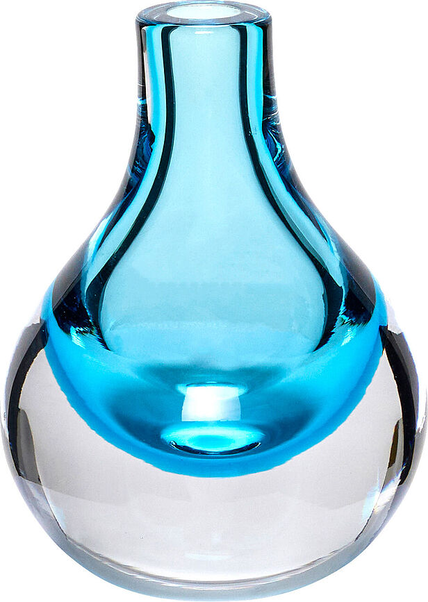El precioso jarrón de cristal de Hübsch adopta la original forma de una gota cayendo. Su reducido tamaño (10 x 14 cm) permite colocar en él una pequeña rama o una flor seca, pero también puede lucirse como elemento decorativo por sí solo. Su característica más distintiva es la inusual coloración bitono del cristal.