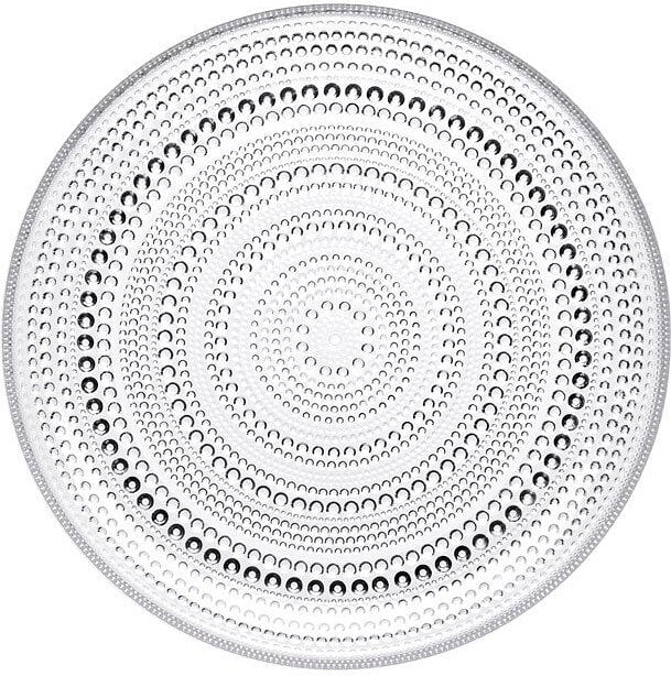 La colección Kastehelmi, diseñada en 1964 por el célebre Oiva Toikka, es un verdadero deleite para quienes se sienten cautivados por la belleza del cristal y valoran los diseños fuera de lo común en su mesa. Con ella, las comidas cotidianas se transforman en una experiencia gastronómica de alta cocina. Kastehelmi significa gota de rocío en finlandés, una inspiración que se hace patente en la creación de esta vajilla única. Las pequeñas burbujas de cristal, distribuidas uniformemente como collares de perlas alrededor de la superficie de los platos, cuencos, copas y candelabros de la colección, les confieren una personalidad inusual que, a pesar de ser absolutamente singular, armoniza maravillosamente con otros juegos de porcelana.