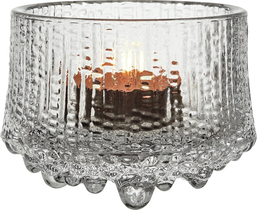 Este portavelas de cristal, bellamente 'tallado', procede de la originalísima colección Ultima Thule de Iittala, diseñada por Tapio Wirkkala. La colección presenta elegantes recipientes que son perfectos para interiores ricamente decorados. La vajilla Ultima Thule es apta para lavavajillas.