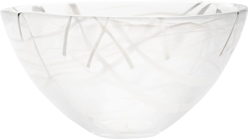 El bol para ensalada Contrast de Kosta Boda es un diseño único de Anna Ehrner, quien se ha ganado la fama por sus expresivas obras con líneas de colores en el cristal.