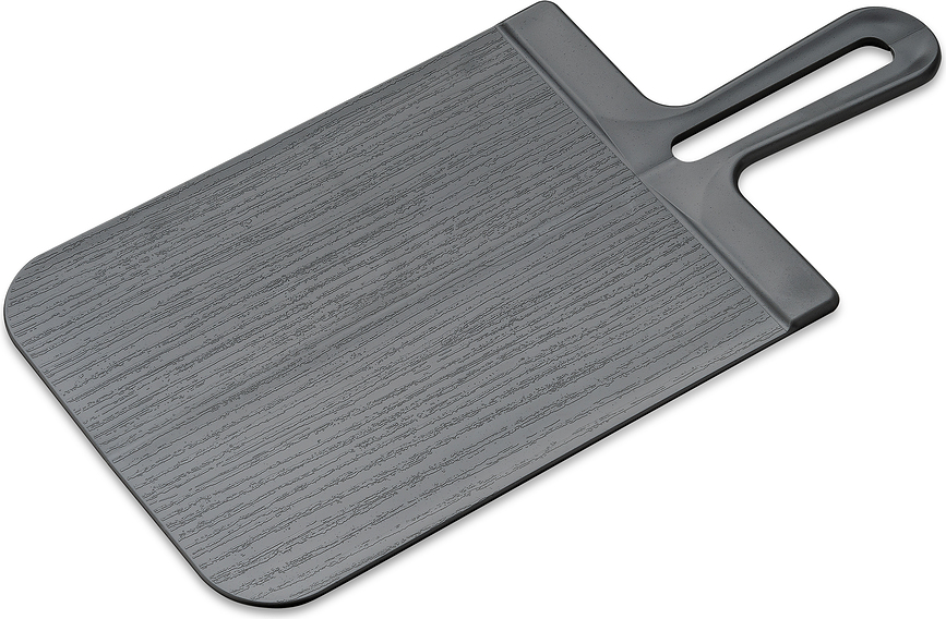 La tabla de cortar Snap Organic Nature S de Koziol ha sido creada a partir de un plástico ecológico con celulosa añadida. Se parte por la mitad, lo que facilita deslizar los alimentos directamente al plato.