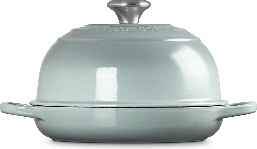 - La tapa garantiza que el vapor se mantenga dentro del molde, creando el ambiente perfecto para un pan crujiente por fuera y tierno por dentro. El asa es resistente al calor hasta 260 °C y lo suficientemente práctica como para agarrarla fácilmente con un guante de cocina.