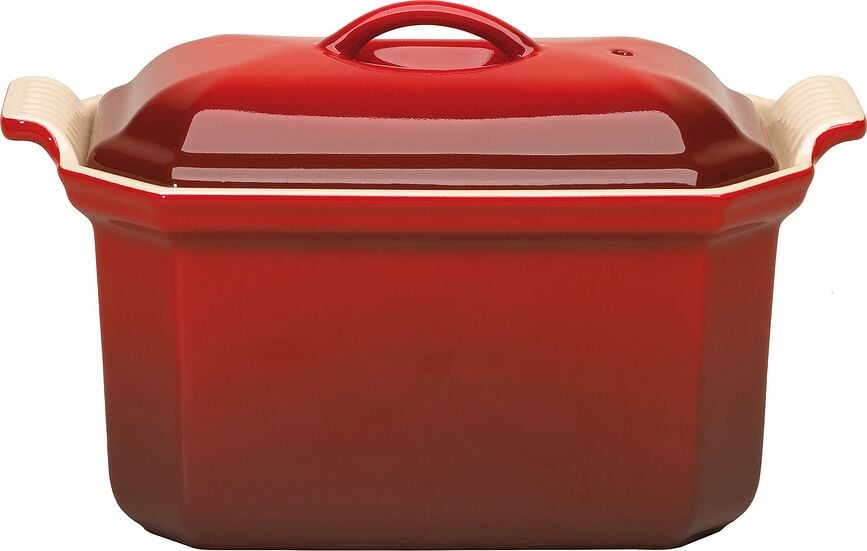Versiones disponibles:- Terrina con prensa Heritage, 14 cm, rojo cereza, Terrina con prensa Heritage, 17 cm, rojo cereza, Molde para Paté Heritage de cerámica, 32 cm, color cereza, con prensa