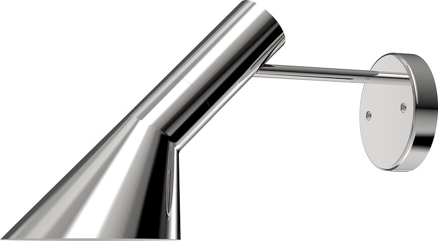 La lámpara de pared AJ, sin cable ni interruptor visibles, de la marca Louis Poulsen, es una pieza atemporal y minimalista que fusiona funcionalidad y un diseño estético impecable.