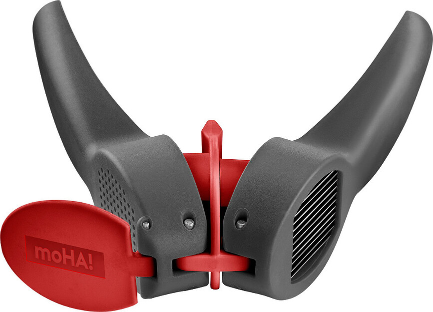 El prensa ajos Aglio, que a la vez es un cortador de ajos, te permite 'sacarle el jugo' al ajo de forma rápida y sencilla, esa fuente inagotable de salud y sabor en tu cocina. Este práctico utensilio, fabricado en plástico ligero y resistente en un elegante color rojo vino con acabados en blanco, es de lo más duradero y se adapta perfectamente a la mano gracias a sus mangos ergonómicos. Gracias a su diseño de doble cara, este exprimidor es un auténtico dos en uno. Por un lado, exprime el diente de ajo con una precisión asombrosa; por el otro, lo corta en finas láminas, ¡como por arte de magia! Y para que no te compliques la vida, cuenta con un pie especial que facilita la limpieza de los orificios. ¡Adiós a los restos de ajo incrustados!