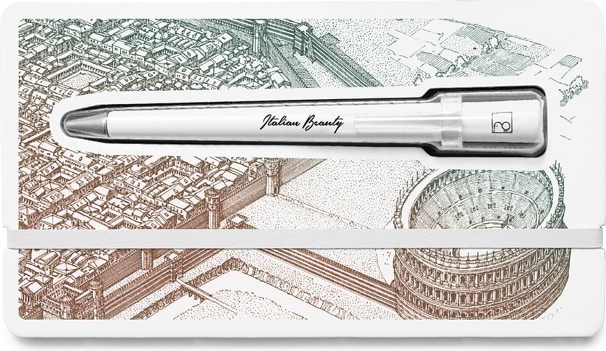 - Empaquetado en un elegante estuche adornado con bocetos de arquitectura italiana, lo que lo convierte en una idea ideal para un regalo único.