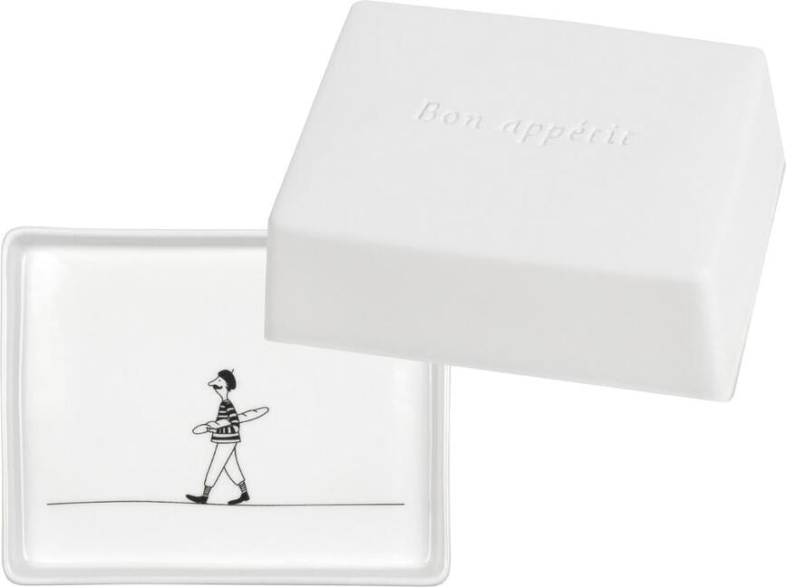 ¿Es este un francés típico con una baguette bajo el brazo? ¡Yo diría que sí! Lo único que le falta es un poco (o un mucho) de mantequilla... ¡Qué interesante!