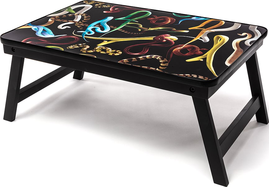 La bandeja plegable Toiletpaper es una solución ingeniosa de la marca Seletti, con su característico estilo atrevido. ¡Solo hay que ver los gráficos! Además de la superficie, la bandeja cuenta con dos patas plegables que permiten colocarla sobre cualquier superficie estable. Ahora, trabajar con el portátil en el sofá o disfrutar de un romántico desayuno en la cama será posible e incluso deseable. Las patas se pliegan de forma rápida y sencilla, dejando la bandeja plana pero sin perder su funcionalidad.