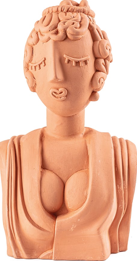 Esta figurita de la colección Magna Graecia de Seletti es una variación modernizada sobre el tema de los antiguos bustos. El artista Antonio Aricò ha hecho referencia aquí al legado de las colonias griegas situadas en el territorio del sur de Italia, al mismo tiempo que guiña un ojo al espectador y le arranca una sonrisa.