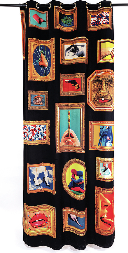 Los motivos excéntricos convierten a la cortina para salón de la colección Toiletpaper de Seletti en algo absolutamente fenomenal y... controvertido.