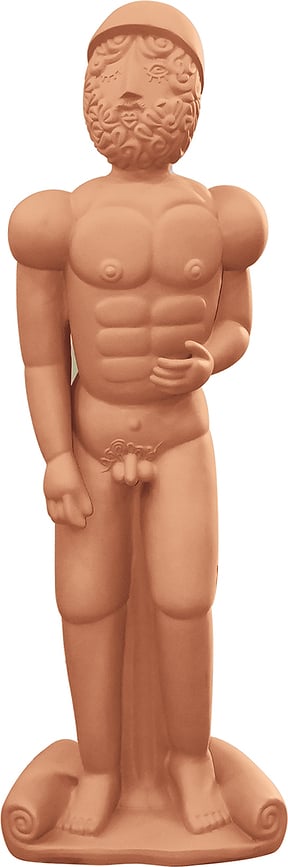 Podría decirse que la estatua griega clásica ha sido aquí minimizada y despojada de muchos detalles anatómicos, ¡pero ha ganado un toque de humor!