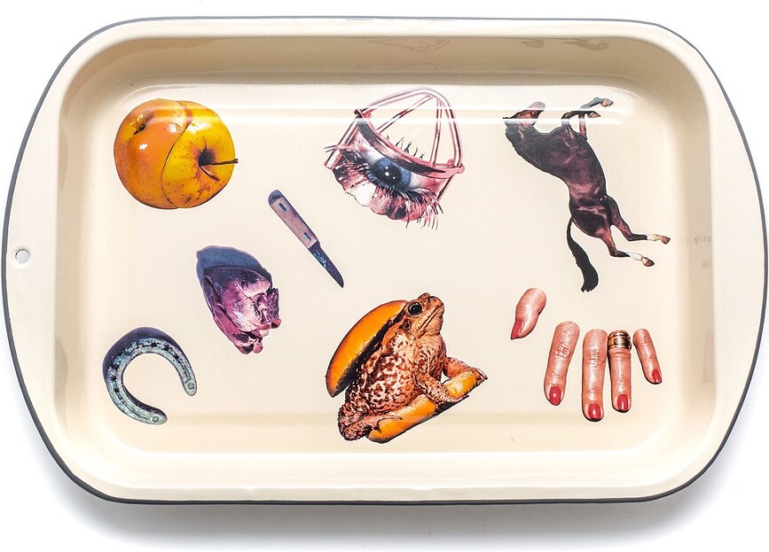 El molde de metal esmaltado de Seletti es un recipiente de estilo retro que también funciona a las mil maravillas como bandeja para servir o para guardar pequeños objetos en la cocina. El molde está decorado con gráficos de la revista Toiletpaper, con un toque de humor negro: un sapo convertido en hamburguesa, dedos separados de las manos y un corazón en estado puro. Solo apto para personas con nervios de acero (y un considerable sentido del humor).