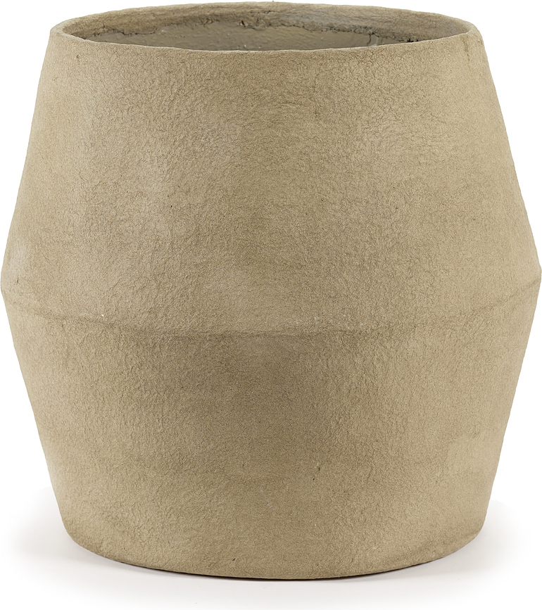 - Fabricada con pasta de papel, presume de una textura cruda y única que complementa a la perfección el verde natural de las plantas.