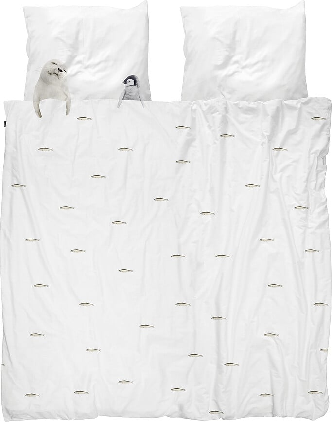 - El estampado impreso en la superficie de la ropa de cama es muy realista: representa una cría de foca y un polluelo de pingüino.