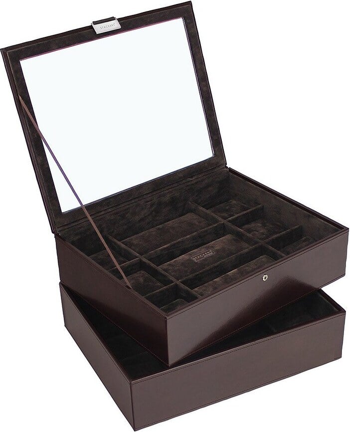 Los detalles que caracterizan a todos los modelos Stackers, como el elegante y práctico cierre magnético con el logotipo de la marca, la cinta que evita que la tapa se caiga, el suave acolchado interior y la meticulosa elaboración típica de todos los productos Stackers, son ventajas adicionales de la caja que aquí se presenta. Esta caja lucirá espléndida sobre una cómoda en el dormitorio o en un armario del baño, convirtiéndose en el regalo perfecto para los amantes de los relojes.