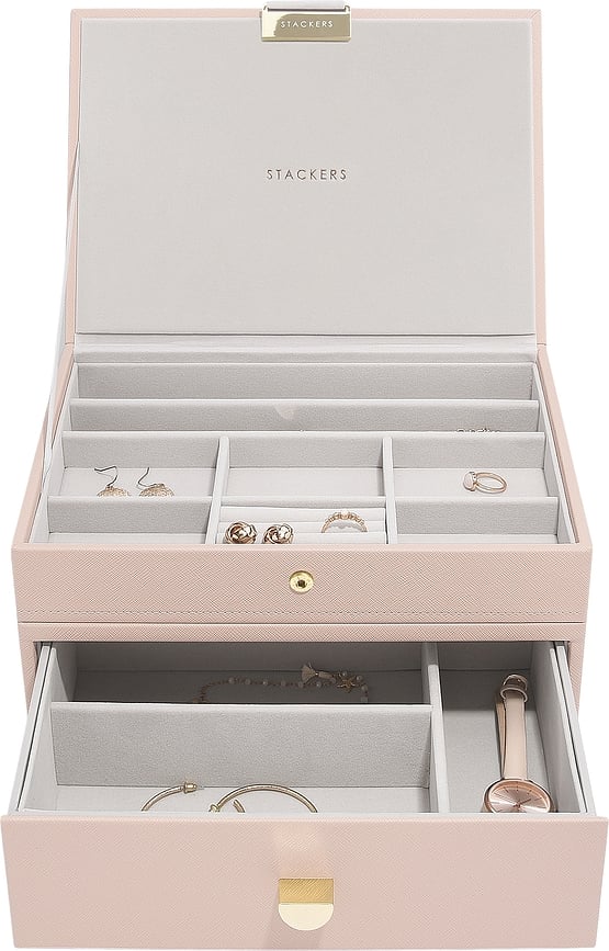 Versiones disponibles:- Joyero doble Stackers Classic, rosa claro, con cajón, Joyero doble Stackers Classic, con cajón, beige claro, Joyero doble Stackers Classic, topo, con cajón, Joyero doble Stackers Classic, azul marino, con cajón, Joyero doble Stackers Classic, gris, con cajón