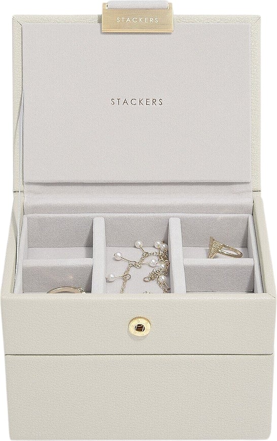 Versiones disponibles:- Joyero Stackers doble, micro, beige claro, Joyero doble micro Stackers, verde salvia, Joyero doble Stackers, micro, gris piedra, Joyero doble micro Stackers, rosa, Joyero doble Stackers Micro, color topo