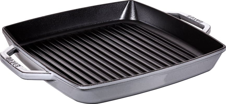 Versiones disponibles:- Sartén Parrilla de hierro fundido Staub, cuadrada, 33 cm, grafito, con doble asa, Parrilla de hierro fundido Staub, cuadrada, 33 cm, negra, con dos asas