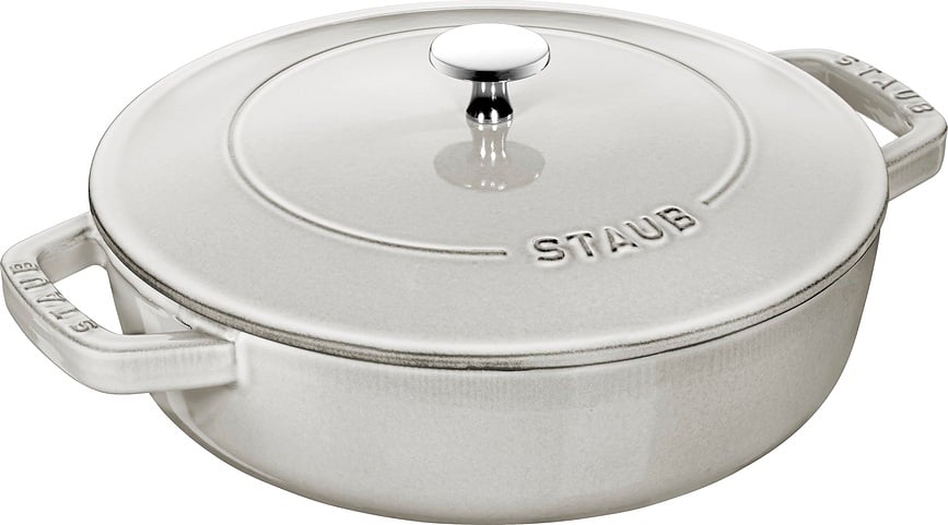 La pesada y profunda sartén Staub con dos asas y tapa es ideal para cocer a fuego lento esos platos que conquistan con su sabor y aroma únicos. También será tu aliada perfecta para freír o preparar recetas con múltiples ingredientes.