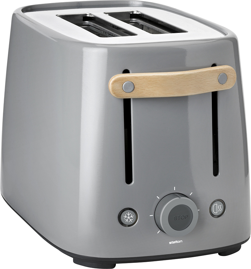 Una tostadora elegante, cuyo carácter único se realza con un encantador detalle de madera.