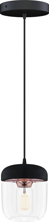 Versiones disponibles:- Lámpara colgante Acorn negra con cobre pulido, individual, Lámpara colgante Acorn negra con cobre pulido, doble, Lámpara colgante Acorn negra con cobre pulido, triple