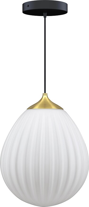 - El set incluye, además de la pantalla de cristal, una tapa superior de metal, disponible en varias opciones de color, un cable de suspensión en blanco o negro, y un florón de techo (también en varias versiones de color).