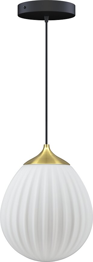 - Además de la pantalla de cristal, el conjunto también incluye una tapa superior de metal, disponible en varias opciones de color, un cable colgante en blanco o negro, y una roseta de techo (también en varias versiones de color).