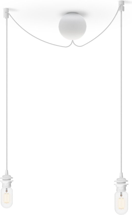 La suspensión de lámpara colgante Cannoball Cluster 2 es una propuesta de lo más interesante de la marca Umage. Esta suspensión permite colgar dos lámparas de un solo punto eléctrico, lo cual resulta ideal para el salón, el pasillo o el comedor. La suspensión se compone de un elegante embellecedor de silicona en forma de esfera de 12 cm de diámetro, del que parten dos cables de 2,5 m cada uno con elementos de fijación y una rosca estándar E27. La suspensión es compatible con la mayoría de los modelos de lámparas Umage y con otras pantallas con roscas estándar.