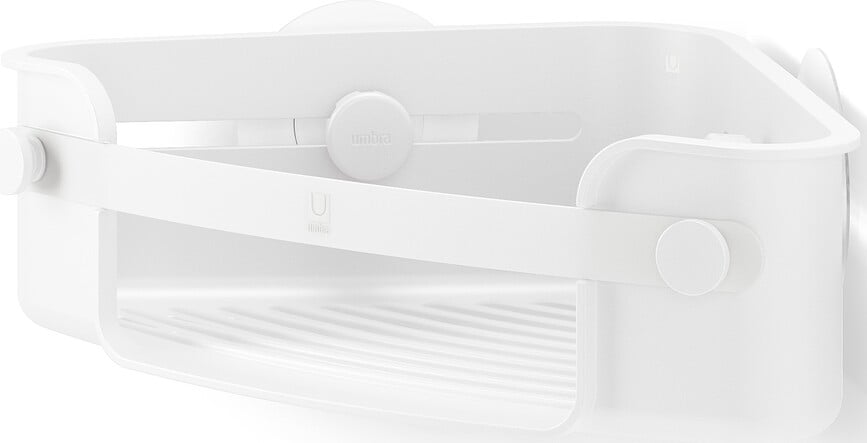 Ten siempre a mano tus artículos de aseo favoritos mientras te bañas, gracias a la estantería de ducha esquinera adhesiva Flex de Umbra. Ha sido fabricada en ABS y policarbonato.