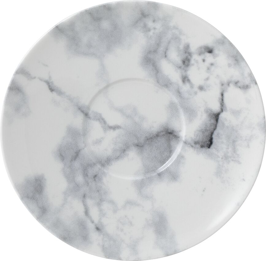 El platillo Marmora de Villeroy & Boch está diseñado para una taza de café de la misma colección, aunque también se puede combinar con muchas otras tazas blancas. Curiosamente, la superficie del platillo imita el mármol, pero en realidad está fabricado en porcelana de primera calidad.