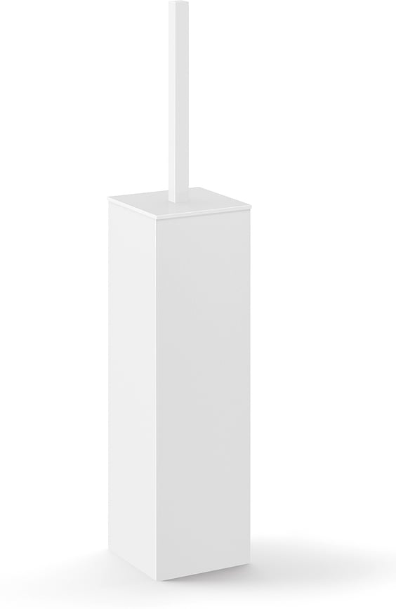 El escobillero de pie Carvo de Zack se integra discretamente en el diseño de un baño contemporáneo gracias a su forma sencilla y geométrica, y a su superficie de acero.