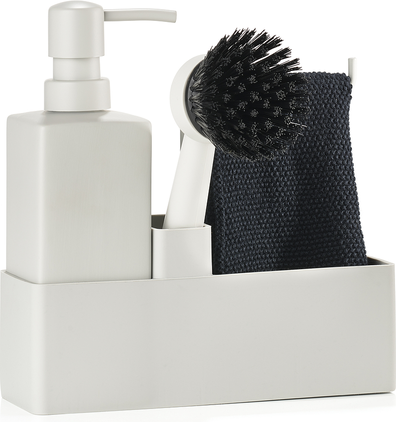 El organizador de fregadero de silicona de Zone Denmark es una verdadera joya para mantener tu cocina impecable. Incluye un práctico dispensador de cerámica, perfecto para jabón líquido o detergente, un cepillo con punta reemplazable para que siempre esté como nuevo, y un paño a juego. Es tan resistente que no tendrás que preocuparte por los arañazos y su limpieza es un juego de niños. ¡Adiós al desorden y hola a la elegancia en tu fregadero!