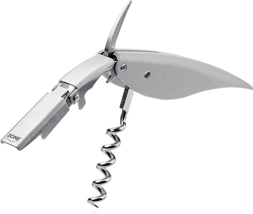 ¡Un amigo ingenioso para cualquier amante del vino! El sacacorchos y abridor Rocks es una navaja que también te permite abrir una botella de cerveza. Además, está equipado con una pequeña cuchilla para cortar el precinto. Está fabricado en acero y plástico ABS.