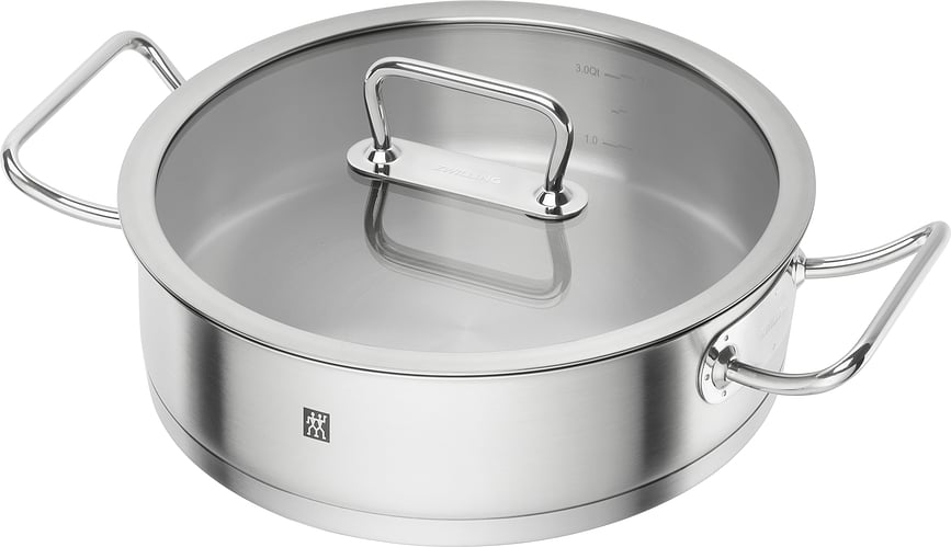 Ofrece un trabajo cómodo en la cocina y es extremadamente duradero: la sartén para saltear con dos asas y tapa será útil tanto para el uso diario como para preparar almuerzos y cenas exquisitos.